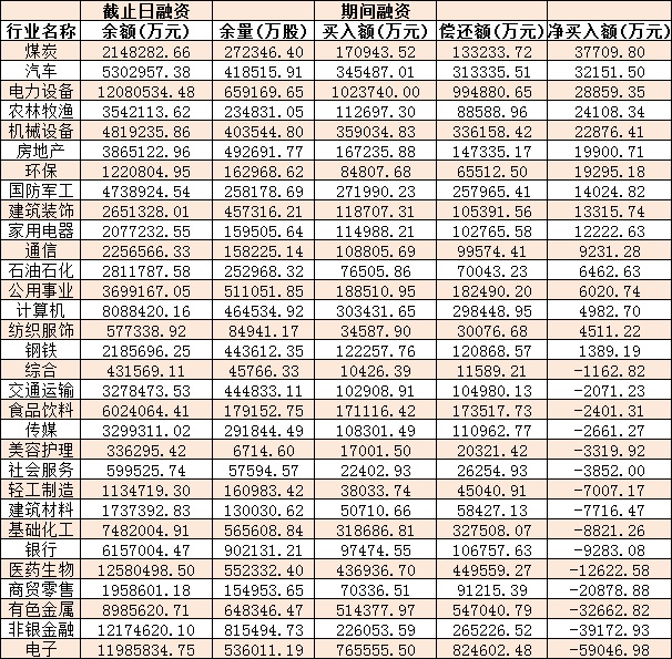 表:7月28日申萬一級行業(yè)兩融交易情況:
