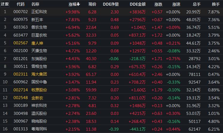 從申萬一級行業(yè)來看,截至7月29日上午收盤,農(nóng)林牧漁行業(yè)漲幅居首,達(dá)1.8%,其中,正虹科技漲停。