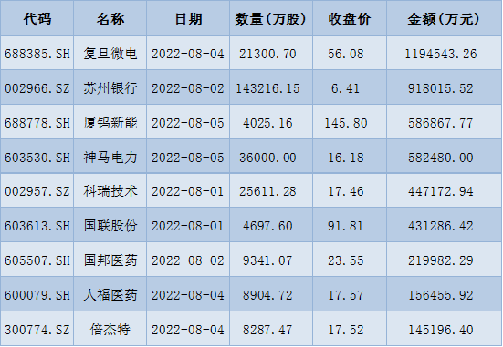 從解禁看,下周將有40只股票面臨限售股解禁,合計(jì)解禁量為33.01億股;按最新收盤(pán)價(jià)計(jì)算,合計(jì)解禁市值為556.09億元。從解禁股情況來(lái)看,復(fù)旦微電解禁金額最高,達(dá)119.45億元。
