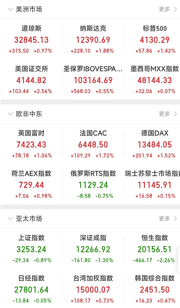 周五,美股三大指數(shù)集體收漲,道指漲0.97%,本月累計(jì)上漲6.73%;標(biāo)普500指數(shù)漲1.42%,本月累計(jì)上漲9.11%,納指漲1.88%,本月累計(jì)上漲12.35%,且納斯達(dá)克100指數(shù)7月份上漲13%,創(chuàng)2020年4月以來(lái)最佳單月表現(xiàn)。