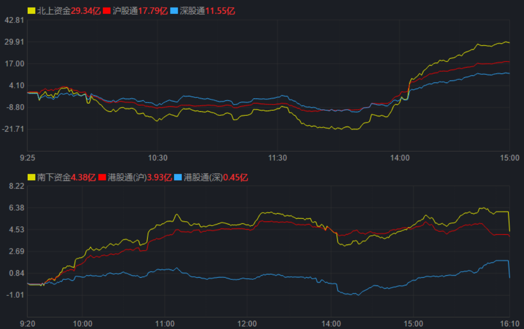 今日A股三大股指早盤震蕩紅盤,盤午后繼續(xù)震蕩走高,滬指收復3200點整數(shù)關(guān)口,三大指數(shù)均漲超1%,深市略強。截至收盤,上證指數(shù)漲1.19%報3227.03點,深證成指漲1.69%報12269.21點,創(chuàng)業(yè)板指漲1.62%報2683.60點;兩市合計成交額達9954億元,北向資金凈買入29.34億元??傮w來看,個股漲多跌少。