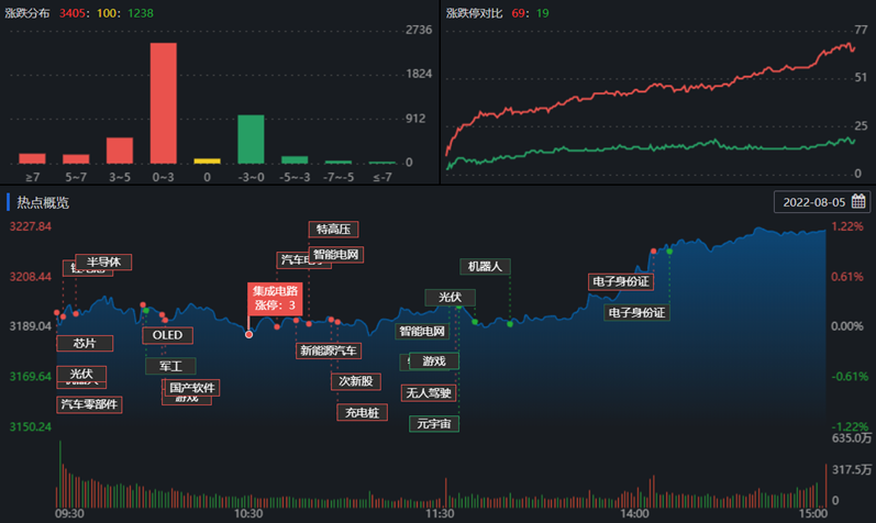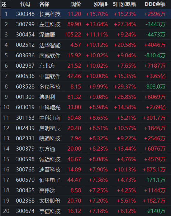 8月5日,申萬一級行業(yè)中計算機領(lǐng)漲,漲幅達3.93%。行業(yè)255只交易中的個股,有224只上漲,其中,有10只個股漲停,48只個股漲幅超5%。