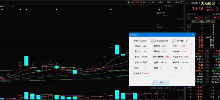 8月5日,大港股份漲9.97%,報13.79元。該股自8月1日以來,截至8月5日已連續(xù)5個交易日上漲,累計漲幅達51.37%,最近的4個交易日實現(xiàn)連續(xù)漲停。最新A股總市值達80.03億元,A股流通市值78.20億元。