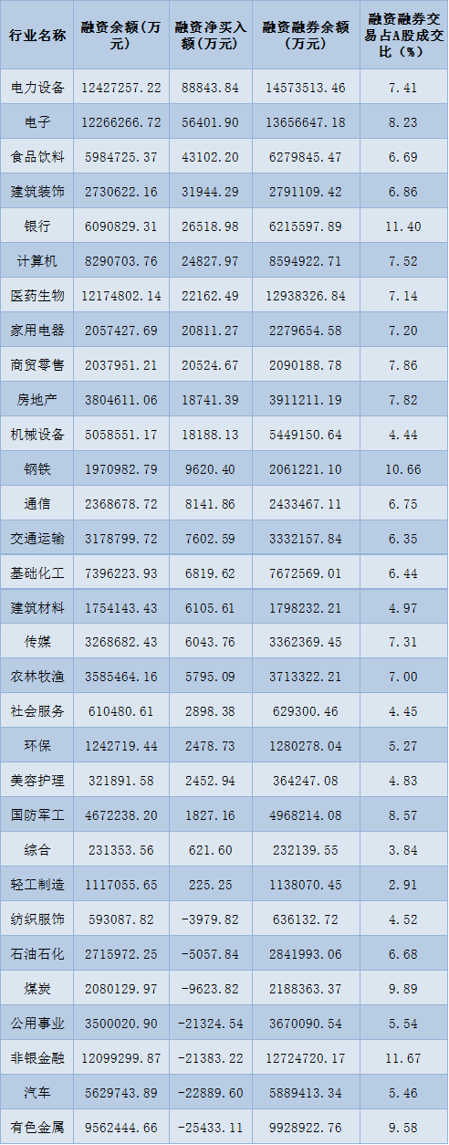 表:8月18日申萬一級行業(yè)兩融交易情況: