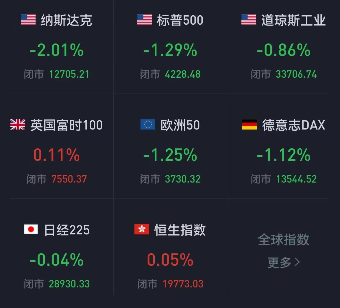 周五,美國三大股指全線收跌,道指跌0.86%報33706.74點,標普500指數(shù)跌1.29%報4228.48點,納指跌2.01%報12705.22點。本周,道指跌0.16%,標普500指數(shù)跌1.21%,納指跌2.62%。
