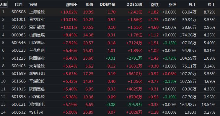 8月25日,煤炭行業(yè)漲幅居首達5.22%。其中,兗礦能源、上海能源、晉控煤業(yè)、*ST未來等4只煤炭股集體漲停。