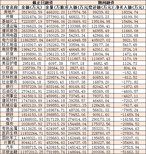 表:9月22日申萬一級(jí)行業(yè)兩融交易情況: