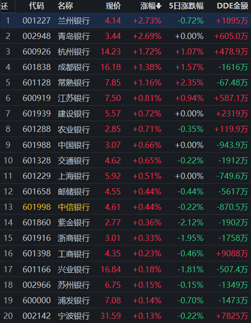 9月28日,申萬(wàn)一級(jí)行業(yè)中銀行業(yè)領(lǐng)漲,微漲0.07%。行業(yè)42只交易中的個(gè)股,有20只上漲,占比47.62%,其中,2只個(gè)股漲幅超2%。