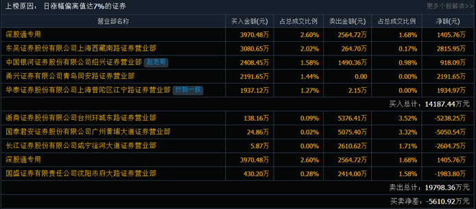 據(jù)同花順機構成功率回測顯示,深股通專用買入3970.48萬元,該營業(yè)部買入后,次日上漲概率50%,平均盈利0.31%。收益率最高的是持股1天后賣出,收益率0.31%,成功率50%。東吳證券股份有限公司上海西藏南路證券營業(yè)部買入3080.65萬元,該營業(yè)部買入后,次日上漲概率36%,平均盈利-1.36%。收益率最高的是持股1天后賣出,收益率-1.36%,成功率36%。