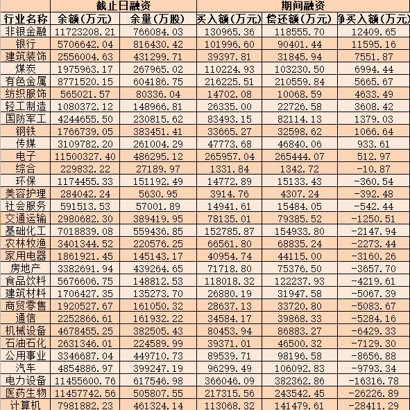 表:10月11日申萬(wàn)一級(jí)行業(yè)兩融交易情況: