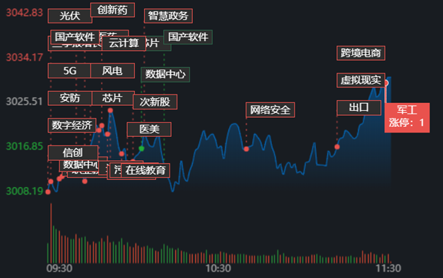 10月13日早盤,A股市場(chǎng)三大指數(shù)低開高走,創(chuàng)業(yè)板指表現(xiàn)突出。截至上午11:30,上證指數(shù)漲0.16%,報(bào)3030.43點(diǎn);深證成指和創(chuàng)業(yè)板指漲幅分別為0.53%和1.09%;滬深兩市合計(jì)成交額4578.3億元??傮w來看,A股市場(chǎng)個(gè)股漲多跌少,有62只個(gè)股漲停,跌停股2只。