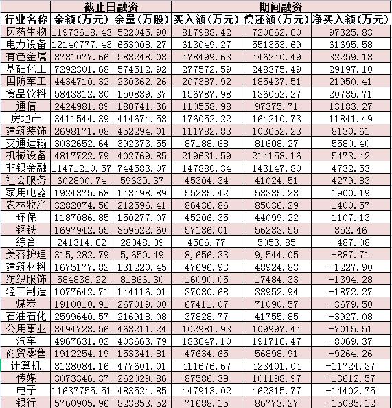 表:11月9日申萬(wàn)一級(jí)行業(yè)兩融交易情況: