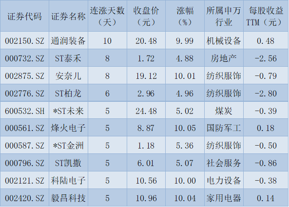 表:連續(xù)上漲5天且今日收盤漲停股一覽
