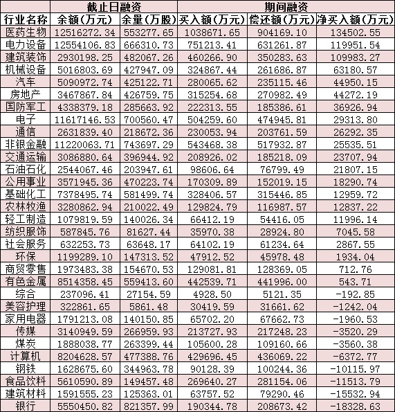 表:12月5日申萬一級(jí)行業(yè)兩融交易情況: