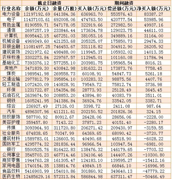 表:1月5日申萬一級(jí)行業(yè)兩融交易情況: