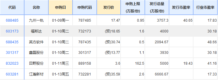 新股方面,根據(jù)發(fā)行安排,A股市場(chǎng)下周將有6只新股申購(gòu)。