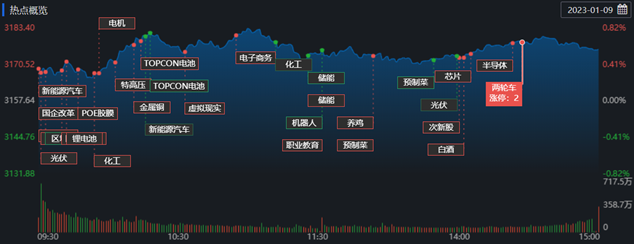 1月9日,A股三大指數(shù)高開震蕩,滬指連續(xù)6個交易日上漲,5日均線已上穿有牛熊分水嶺之稱的120日均線,技術面更趨強勢。截至收盤,上證指數(shù)漲0.58%報3176.08點;深證成指漲0.73%報11450.15點,創(chuàng)業(yè)板指漲0.75%報2440.374點,A股合計成交額8071.65億元,較前一交易日縮減3.69%,北向資金凈買入77.00億元??傮w上看,A股個股漲少跌多,有2969只上漲,1786只下跌。