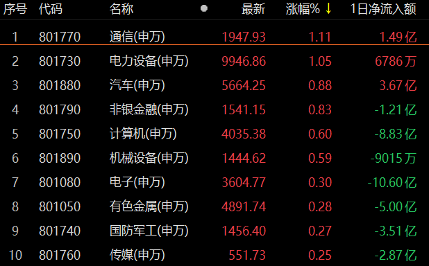 1月12日,行業(yè)板塊呈漲少跌多格局。從31類申萬一級(jí)行業(yè)看,有13類行業(yè)上漲,18類行業(yè)下跌。漲幅方面,通信行業(yè)居首達(dá)1.11%,大單資金凈買入1.49億元,此外,電力設(shè)備也漲幅過1%。跌幅方面,房地產(chǎn)行業(yè)居首,達(dá)1.78%,此外,美容護(hù)理、社會(huì)服務(wù)和商貿(mào)零售等3類行業(yè)跌幅均超1%。