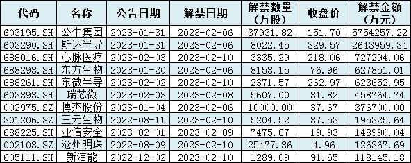與此同時,統(tǒng)計顯示,下周(2月6日-10日)共有63家公司陸續(xù)解禁,按最新收盤價計算,解禁市值為1238.39億元。從解禁市值來看,公牛集團(575.43億元)、斯達半導(dǎo)(264.4億元)等公司解禁金額均超200億元。