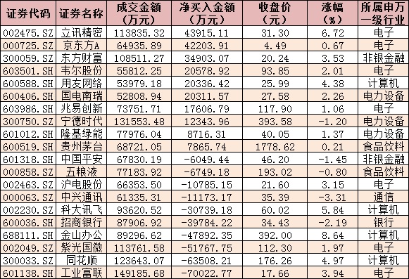 表:今日滬、深股通前十大成交活躍股交易情況: