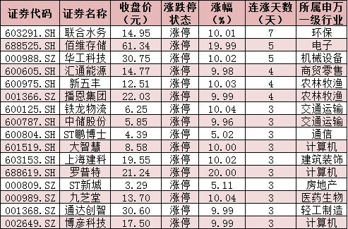 表:連續(xù)上漲3日且今日收盤漲停個(gè)股情況: