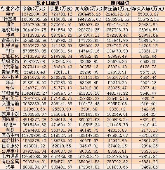 表:4月6日申萬一級行業(yè)兩融交易情況: