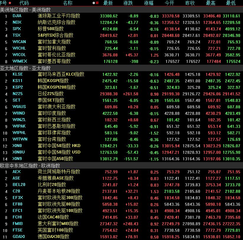 周五,美國(guó)三大股指小幅收跌,道指跌0.03%報(bào)33300.62點(diǎn),錄得五連陰,標(biāo)普500指數(shù)跌0.16%報(bào)4124.08點(diǎn),納指跌0.36%報(bào)12284.74點(diǎn)。本周,道指跌1.11%,標(biāo)普500指數(shù)跌0.29%,納指漲0.4%。