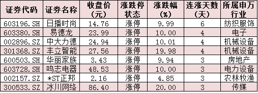 表:連續(xù)上漲3日且今日收盤漲停個股情況: