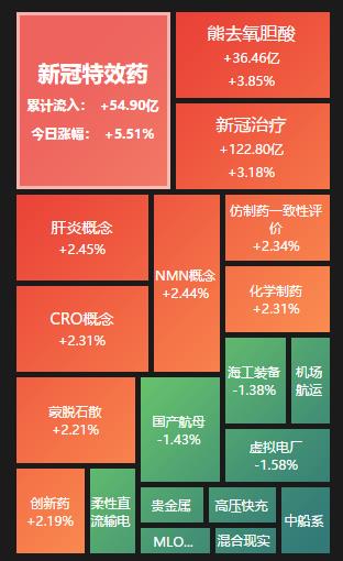 具體看,截至5月23日上午收盤,新冠特效藥板塊漲幅居首達(dá)5.51%,資金凈流入達(dá)54.9億元。其中,翰宇藥業(yè)、森萱醫(yī)藥、拓新藥業(yè)、新華制藥、眾生藥業(yè)等多只醫(yī)藥股漲幅均超10%。