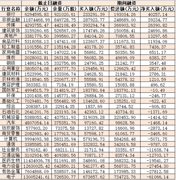表:5月24日申萬一級行業(yè)兩融交易情況: