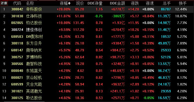 具體看,截至5月25日上午收盤,TOPCON電池板塊漲幅居首達(dá)2.89%,資金凈流入達(dá)96.25億元。其中,帝科股份、仕凈科技、鈞達(dá)股份等多只概念股漲幅均超10%。
