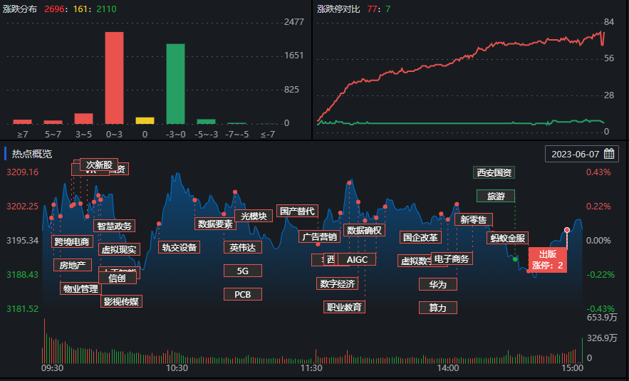 6月7日,兩市再現(xiàn)震蕩分化走勢(shì),滬指盤(pán)中窄幅震蕩,尾盤(pán)拉升后小幅收漲,創(chuàng)業(yè)板指下跌超1.5%,續(xù)創(chuàng)年內(nèi)新低,兩市成交量再度萎縮,北上資金凈買(mǎi)入超25億元。有機(jī)構(gòu)人士表示,靜候新的做多催化劑出現(xiàn)。