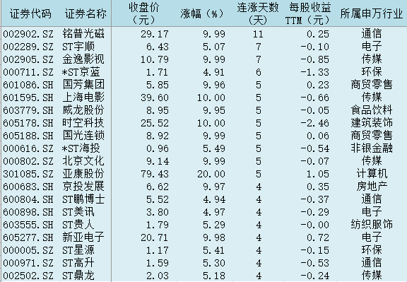 表:連續(xù)上漲4日且今日收盤(pán)漲停股一覽