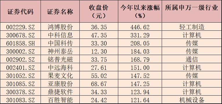 表:今年以來漲幅居前十的數(shù)字經(jīng)濟(jì)概念股一覽