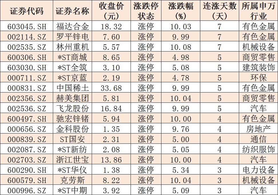 表:連續(xù)上漲3日且今日收盤漲停個股情況: