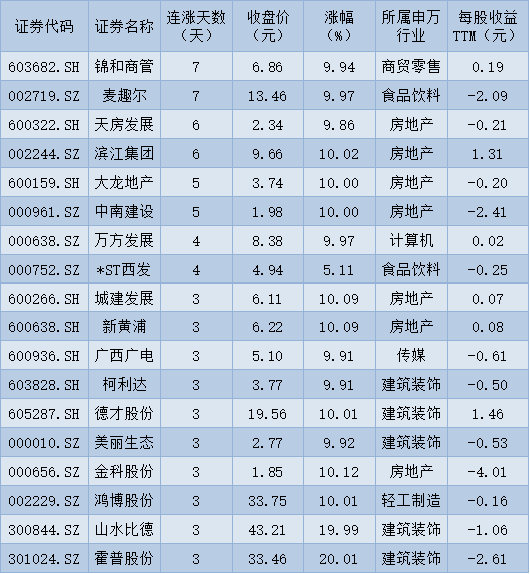 表:連續(xù)上漲3日且今日收盤漲停股一覽