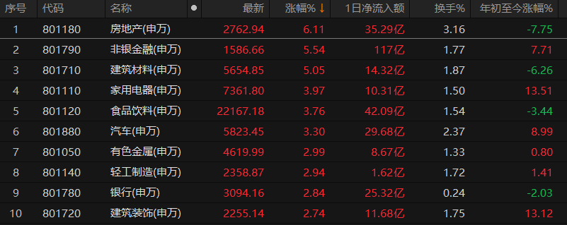 房地產(chǎn)行業(yè)漲6.11%居首