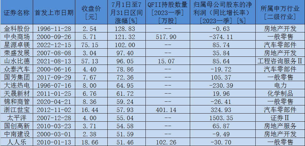 表:7月1日至7月31日,A股市場(chǎng)期間累計(jì)漲幅超50%個(gè)股一覽