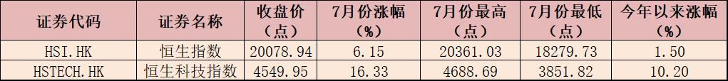 表:7月份港股市場兩大指數(shù)表現(xiàn)一覽