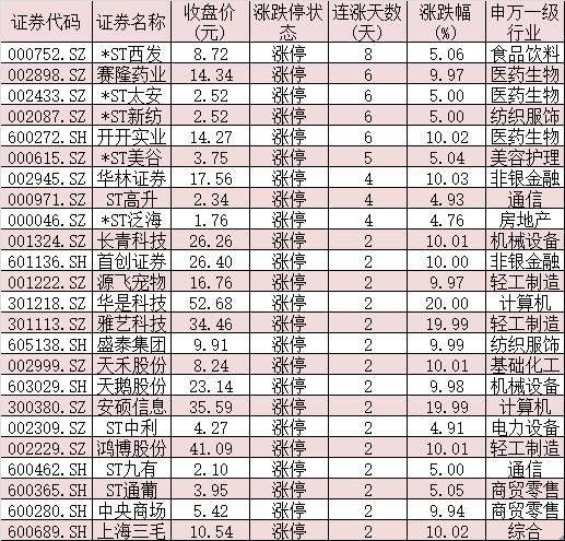 表:連續(xù)上漲2日且今日收盤漲停個(gè)股情況