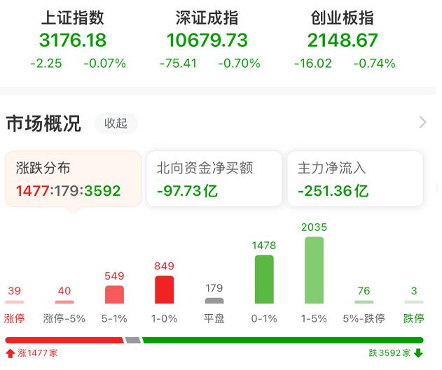 周二(8月15日),A股三大指數(shù)午后探底回升,上證指數(shù)相對(duì)偏強(qiáng)。截至收盤,上證指數(shù)跌0.07%報(bào)3176.18點(diǎn),深證成指跌0.70%報(bào)10679.73點(diǎn),創(chuàng)業(yè)板指跌0.74%報(bào)2148.67點(diǎn);兩市合計(jì)成交金額達(dá)7064.96億元??傮w上看,A股個(gè)股跌多漲少。其中,漲停個(gè)股達(dá)39只,跌停個(gè)股達(dá)3只。