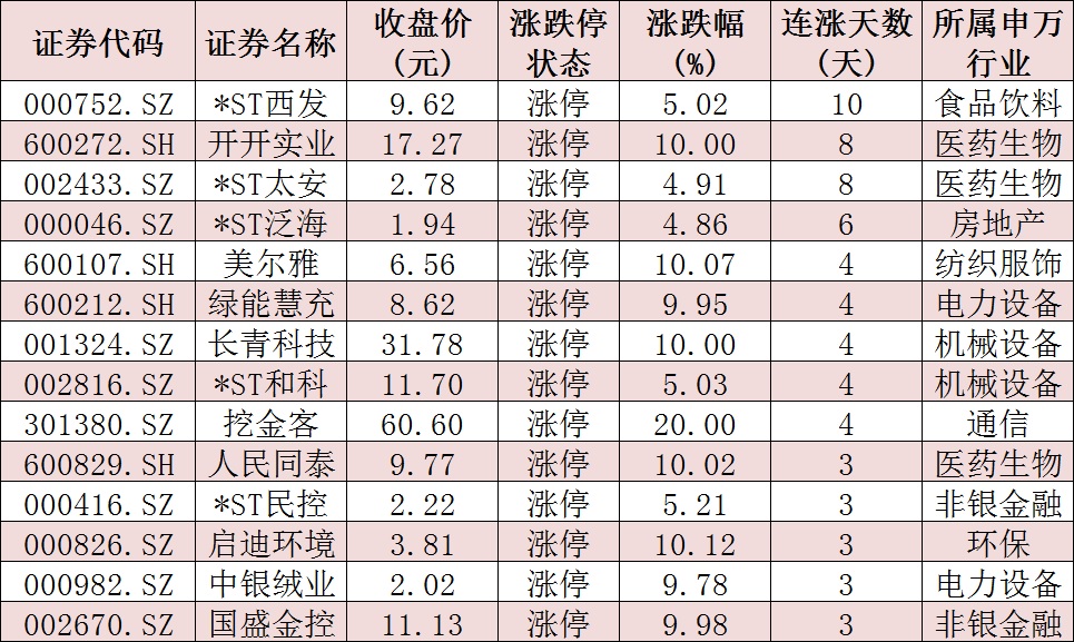 表:連續(xù)上漲3日且今日收盤漲停個(gè)股情況:
