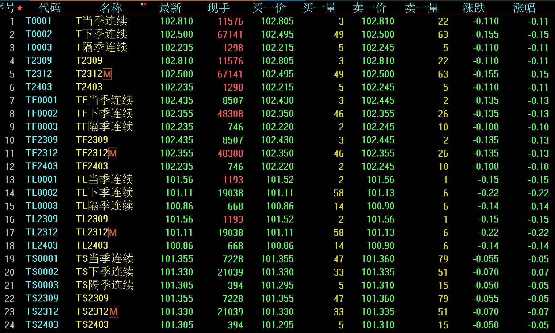 周五,銀行間主要利率債收益率普遍上行,中短券表現(xiàn)更弱。國債期貨全線收跌,10年期國債期貨主力合約收跌0.15%。截至收盤,30年期國債期貨報(bào)收101.110元,下跌0.220元,跌幅0.22%;10年期國債期貨報(bào)收102.500元,下跌0.155元,跌幅0.15%;5年期國債期貨報(bào)收102.355元,下跌0.135元,跌幅0.13%;2年期國債期貨報(bào)收101.330元,下跌0.070元,跌幅0.07%。