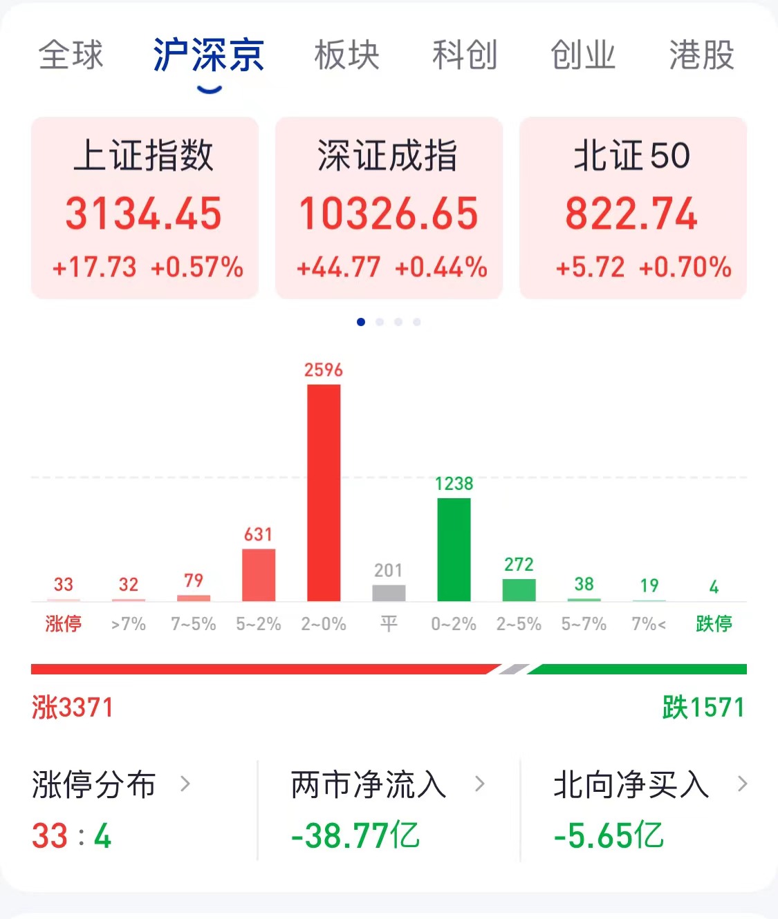 周一(9月11日),三大股指震蕩上行,集體收漲。截至上午收盤,上證指數(shù)漲0.57%,報(bào)3134.45點(diǎn);深證成指和創(chuàng)業(yè)板指漲幅分別為0.44%和0.22%;滬深兩市合計(jì)成交額4898.26億元,總體來看,兩市個(gè)股漲多跌少,超3000只個(gè)股上漲。