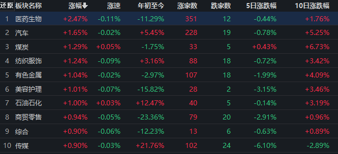 熱點(diǎn)方面,從申萬行業(yè)來看,截至9月11日上午收盤,醫(yī)藥生物領(lǐng)漲,汽車、煤炭、有色金屬等板塊漲幅居前。另外,國防軍工、房地產(chǎn)、計(jì)算機(jī)等板塊跌幅居前。