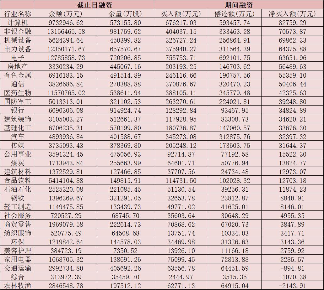 表:9月12日申萬一級(jí)行業(yè)兩融交易情況
