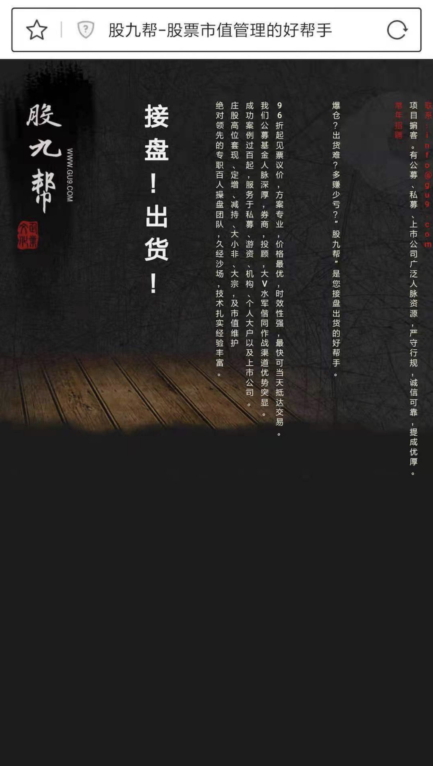 “盤后票網(wǎng)站有了影響力之后,吳承澤成立了股九幫項目,專門收取傭金幫別人出貨。吳承澤前一天在盤后票網(wǎng)站上掛出要出貨的股票,第二天莊家就可以出貨。可以選擇由吳承澤團(tuán)隊來操作賬戶,也可以莊家自己操作賬戶。”陳偉杰進(jìn)一步解釋道。