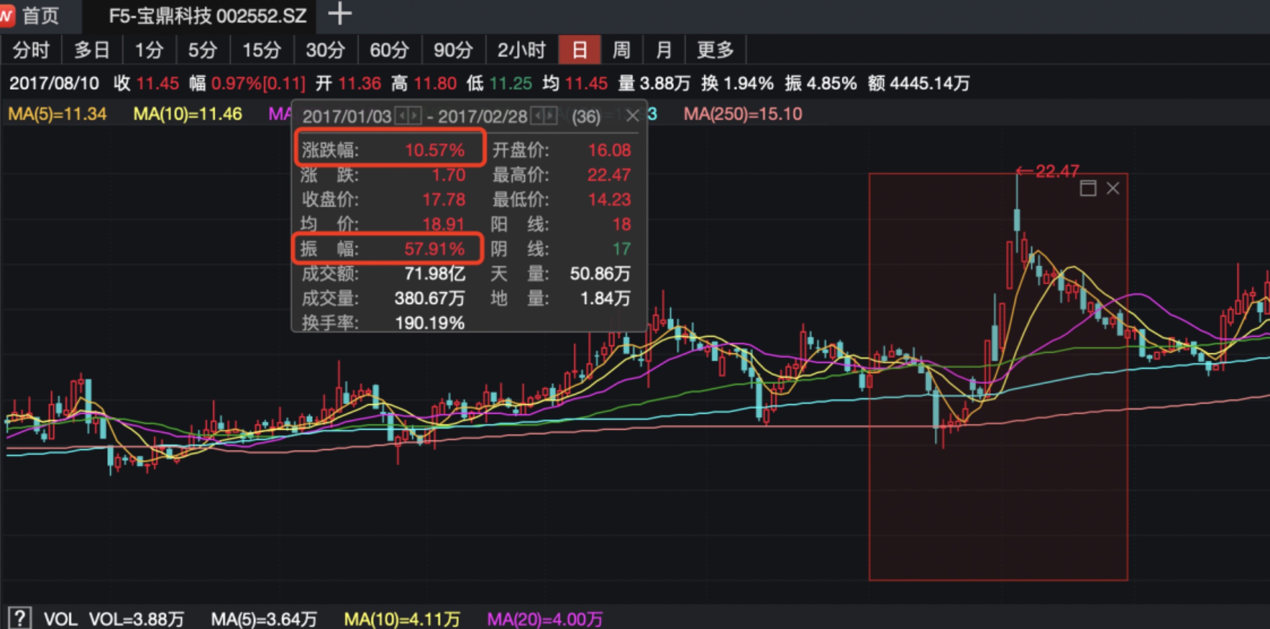 圖為2017年1月份至2月份,吳承澤團(tuán)伙連續(xù)交易“寶鼎科技”時該股走勢