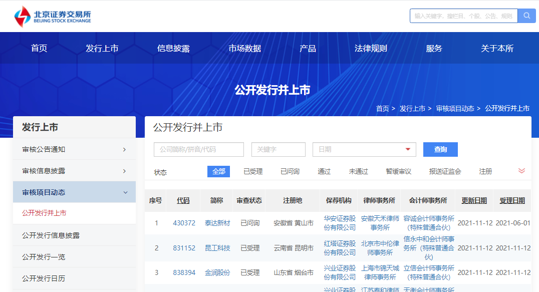 11月15日,北京證券交易所將開市。記者注意到,11月14日,北交所審核系統(tǒng)正式上線,原新三板精選層184單審核項(xiàng)目已經(jīng)全部平移至北交所(含41單終止項(xiàng)目)。目前,新三板精選層審核系統(tǒng)已經(jīng)“下線”。