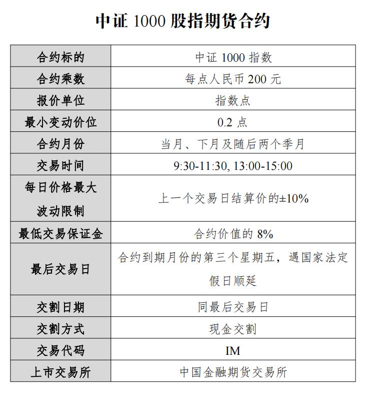 市場(chǎng)人士表示,中證1000指數(shù)成份股與已上市股指期貨品種的標(biāo)的指數(shù)滬深300指數(shù)、上證50指數(shù)、中證500指數(shù)的成份股不重疊,上市后有助于形成覆蓋大、中、小盤股的較為完整的風(fēng)險(xiǎn)管理產(chǎn)品體系,是全面深化資本市場(chǎng)改革的一項(xiàng)重要舉措,有助于進(jìn)一步滿足投資者避險(xiǎn)需求,健全和完善股票市場(chǎng)穩(wěn)定機(jī)制,助力資本市場(chǎng)平穩(wěn)健康發(fā)展。